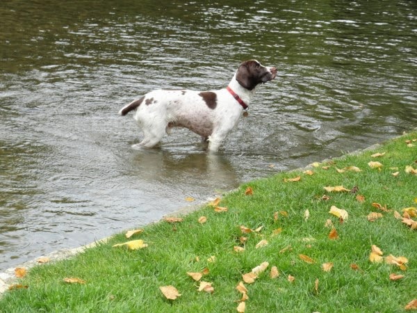 during my time back in town today I saw another dog in the river and this one was just so happy to have his owners thrown him small bits of food to chase in the river. He did really well not to bother the ducks that were also in the river.