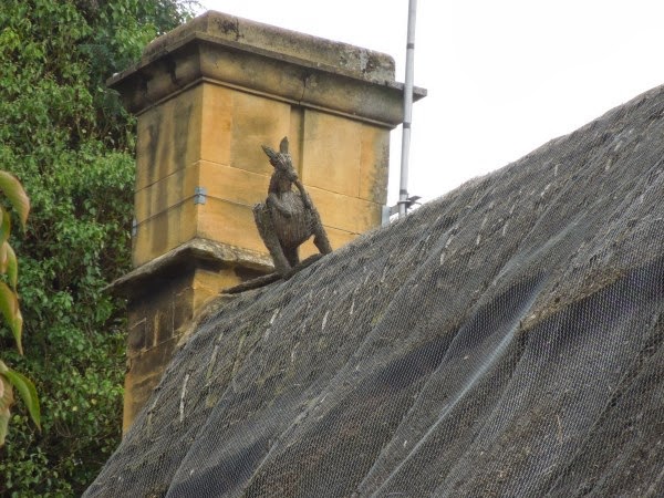 We have learned that many thatchers put a certain symbol on the top of the roof, sort of as their personal trademark. We found a kangaroo on the top of this house today. We thought it very interesting.