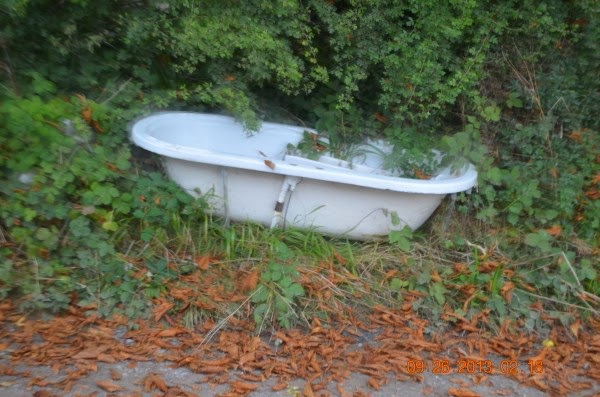 inspection to be finished, we found a bathtub in the grass and got a photo of